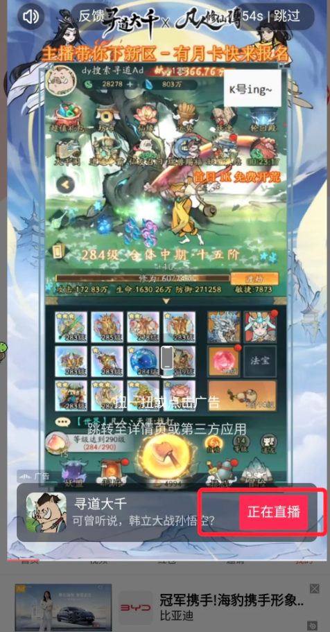 然后还会遇到这种跳屏广,这个是某音的直播广,可以点进去点赞评论加关注再在直播间停留一会儿,如果是直接跳游戏广可以下载玩玩,购物类的话可以加购物车便宜的话买点。