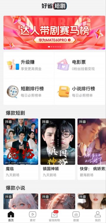 好省短剧是2023年爆火的短剧推广分销平台,也叫好省短剧短剧CPS推广,加入好省短剧平台利用他们强大的系统来推广短剧,只要有人通过我们的链接充值付费了,我们就有收益。其实可以简单看作是淘客形式的短剧版,淘客前几年大火,抓住风口趋势的人很多,赚的盆满钵满,或者做过小说推文的都懂,原理都是一样,短剧就是小说的升级版。