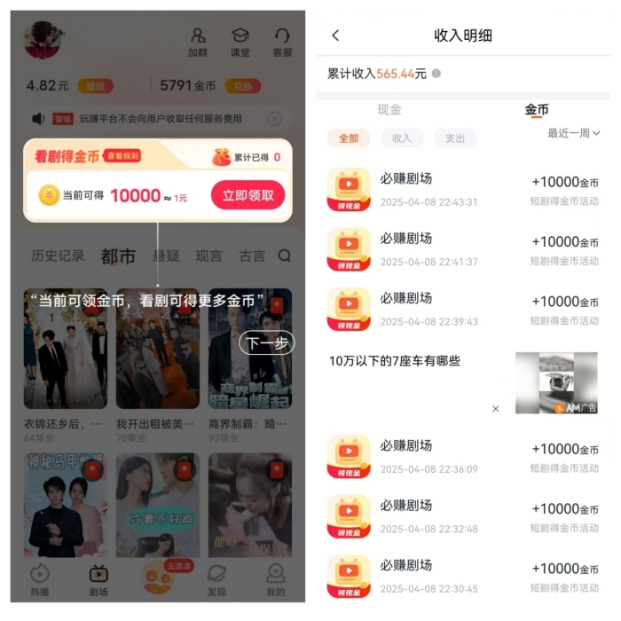 若你也心动,想要加入趣刷趣赚开启赚钱之旅,需要了解其下载途径。由于趣刷趣赚与玩赚部落收益和数据互通,建议直接下载玩赚部落app,这样既能确保下载到官方正版和最新版本,还能借此下载玩赚部落旗下的其他同类产品,助力提升综合收益。下载安装完成后,微信授权登录,在玩赚部落首页下方找到趣刷趣赚进行下载安装,登录趣刷趣赚时确保使用同一微信号授权。进入趣刷趣赚后,在首页可随心选择喜欢的短剧类型观看,观看过程中会出现看广告解锁的情况,观看广告不仅能解锁短剧,还能获得金币奖励,广告展示越多,金币增长越快。当左上角红包提示累积上限时,点击领取,金币便会继续累积。最后回到趣刷趣赚首页,点击“我的”,在收入明细中查看金币奖励,金币可直接兑换现金。另外,趣刷趣赚邀请码在部分渠道可能会有发放,通过邀请码邀请好友加入,你还可能获得额外奖励,进一步增加收益。不妨现在就行动起来,体验趣刷趣赚带来的全新赚钱体验。